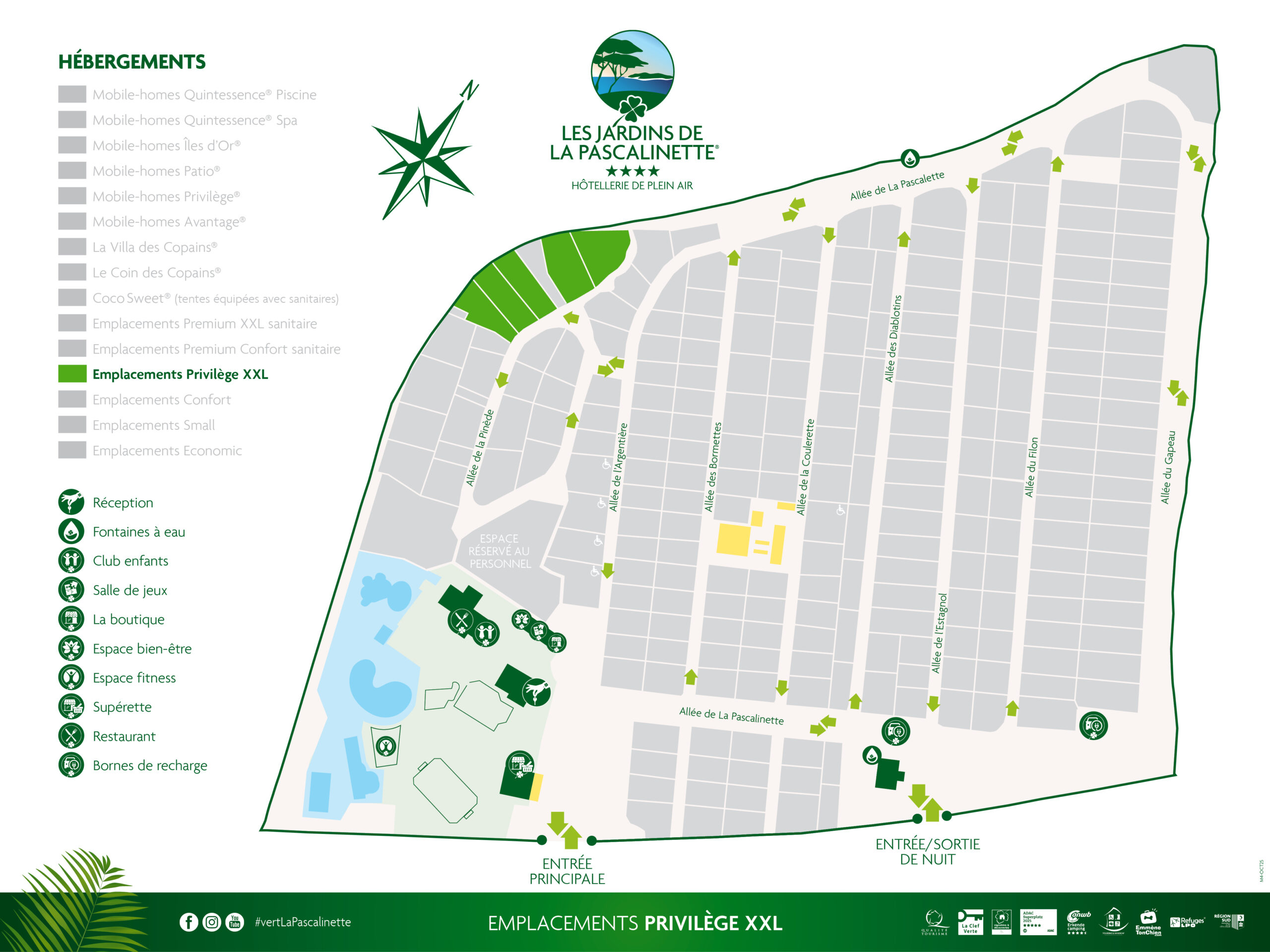 Nos emplacements Standard séduisent par leur excellent rapport qualité-prix, tout en garantissant une atmosphère paisible et conviviale. Selon la taille choisie (80 m² à 120 m²), vous bénéficiez d’un espace plus ou moins généreux pour installer votre matériel, créer votre coin repas et profiter pleinement de notre exception végétale.