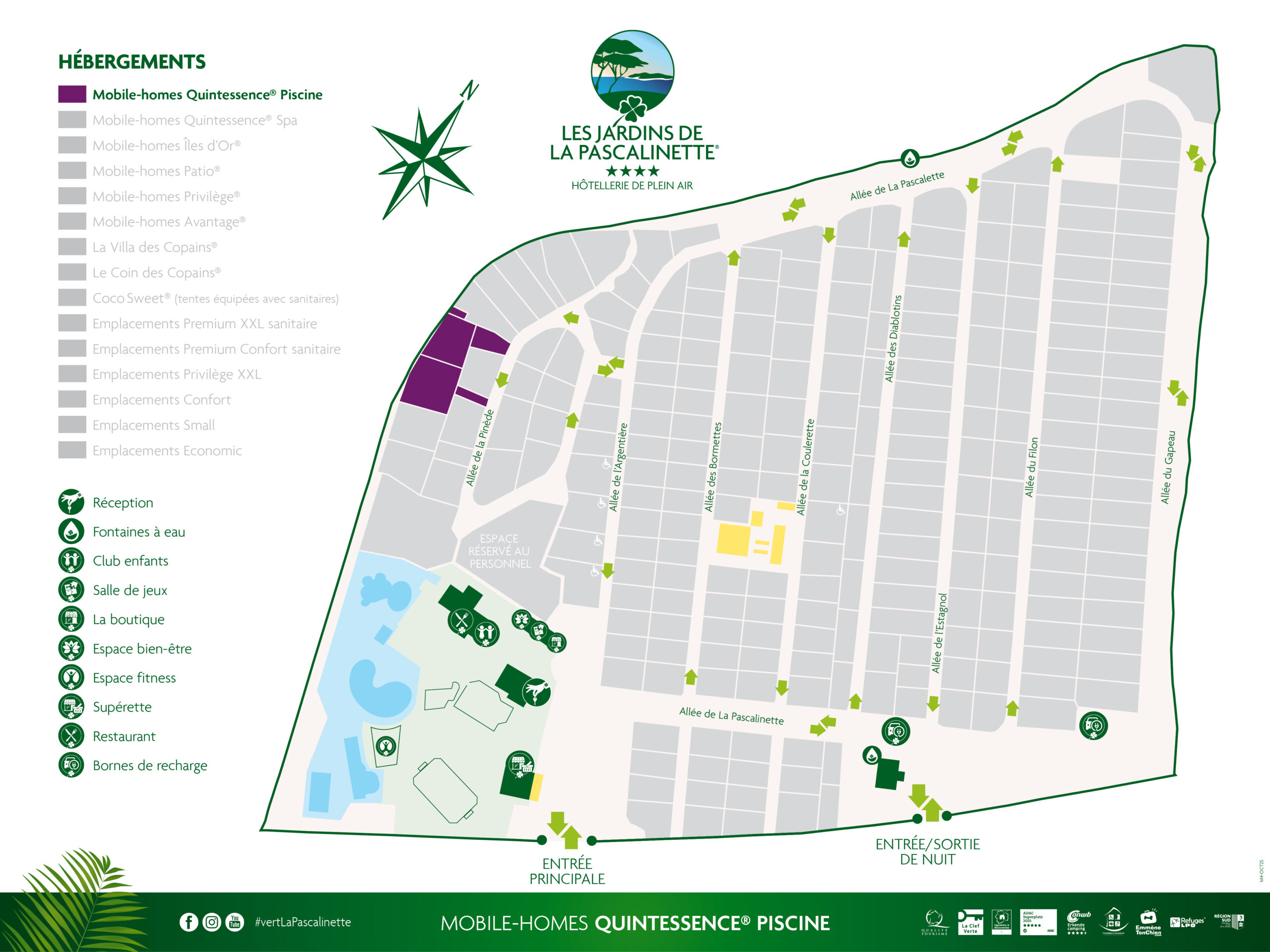 Nous avons passé un très bon séjour dans ce camping. Nous avons sélectionné celui-ci pour deux raisons principales : les mobilhomes Quintessence et les animaux acceptés. Nous avons réservé sur simple photo-montages et nous n'avons pas été déçus du Quintessence. Le personnel est accueillant et disponible, les services proposés ( resto/ supérette/ salle de jeux etc..) sont plus que suffisant et vous évite d'avoir à prendre la voiture à tout va. Nous n'avons pas profité du complexe aquatique du camping car nous avions une piscine privée qui est très bien, taille suffisante, propre et entretenue par le personnel du camping régulièrement ( ou sur demande).